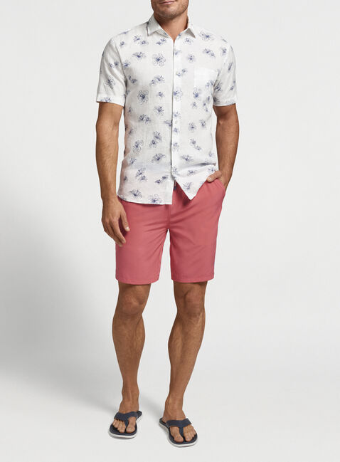 Nautilus Spiral Magic Print Swim Trunk. Longer front rise relaxed fit in the thigh and leg opening. Peter Millar Seaside Collection Hula Girl Dancers Hawaiian.